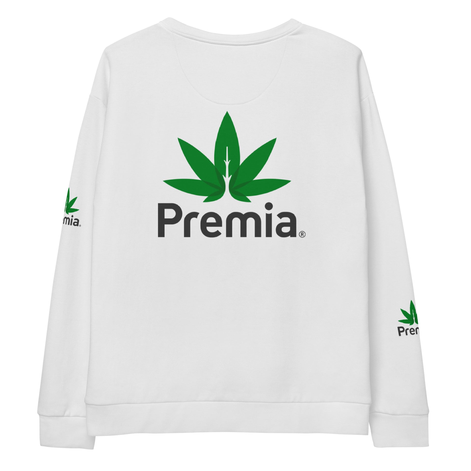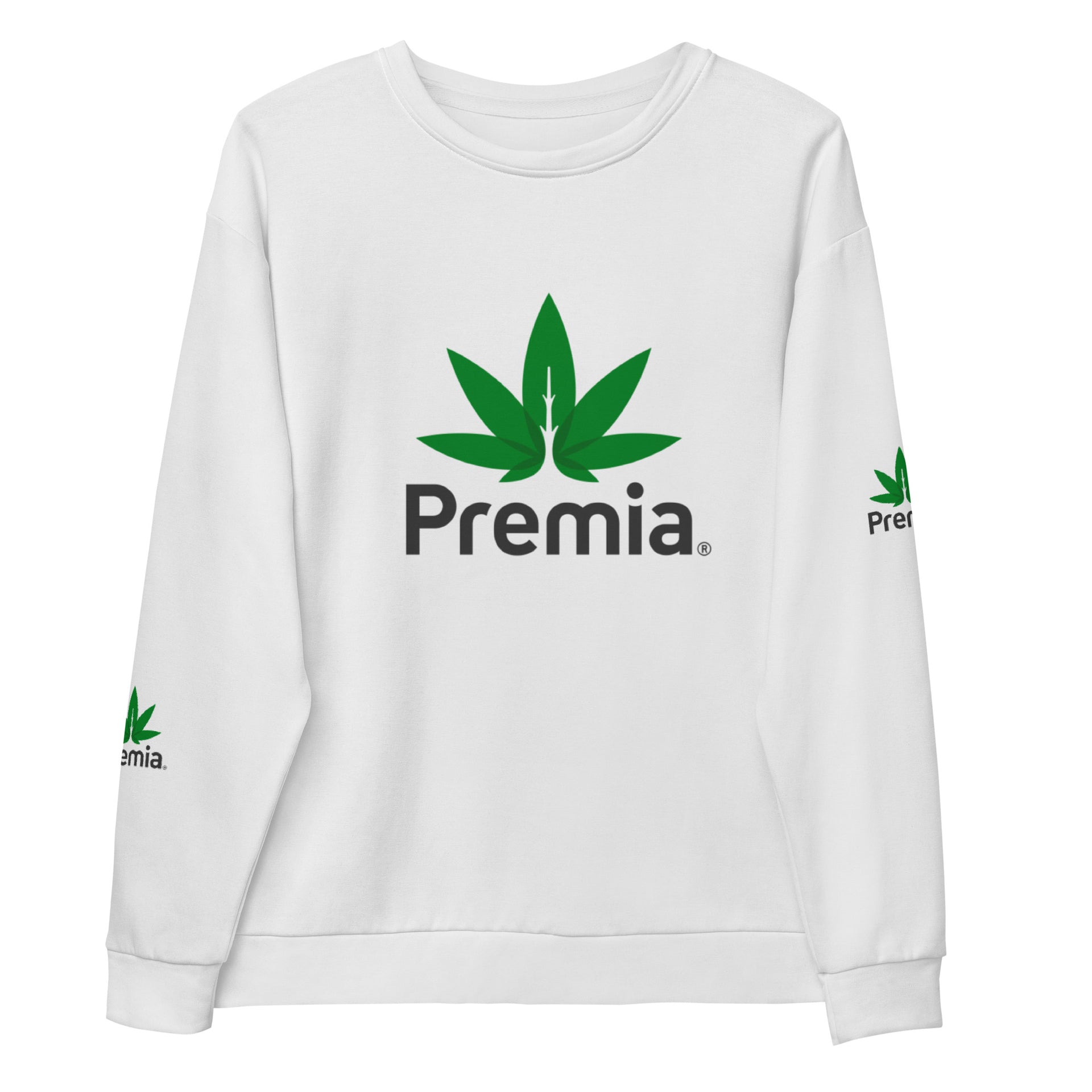 This crew neck sweater has a relaxed fit and soft cotton-feel fabric due to the recycled polyester and spandex blend. It has a large logo on the front and back.